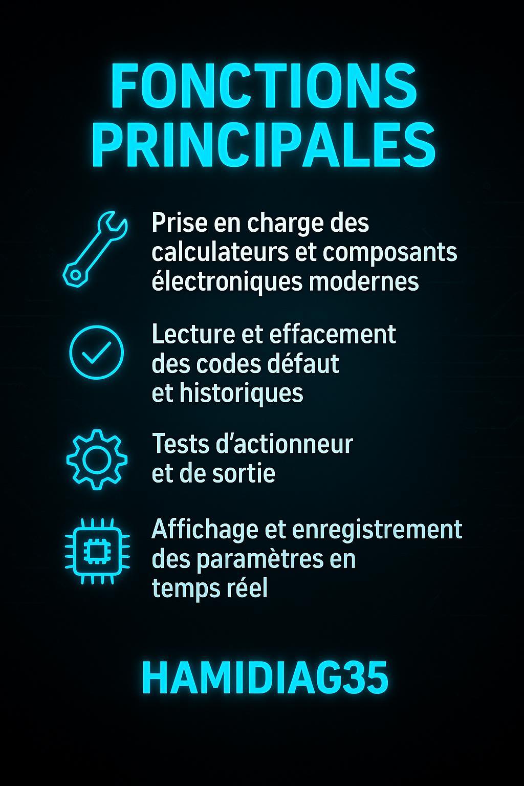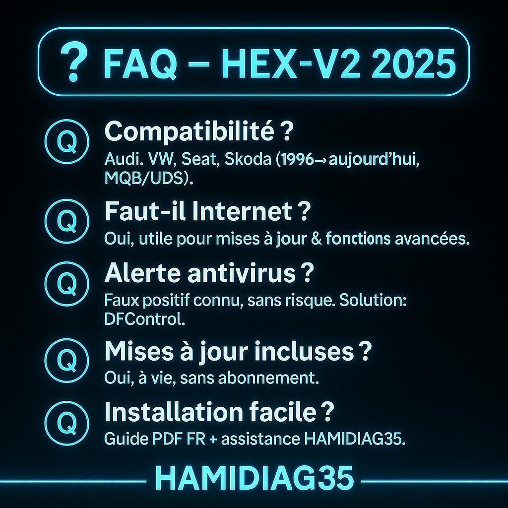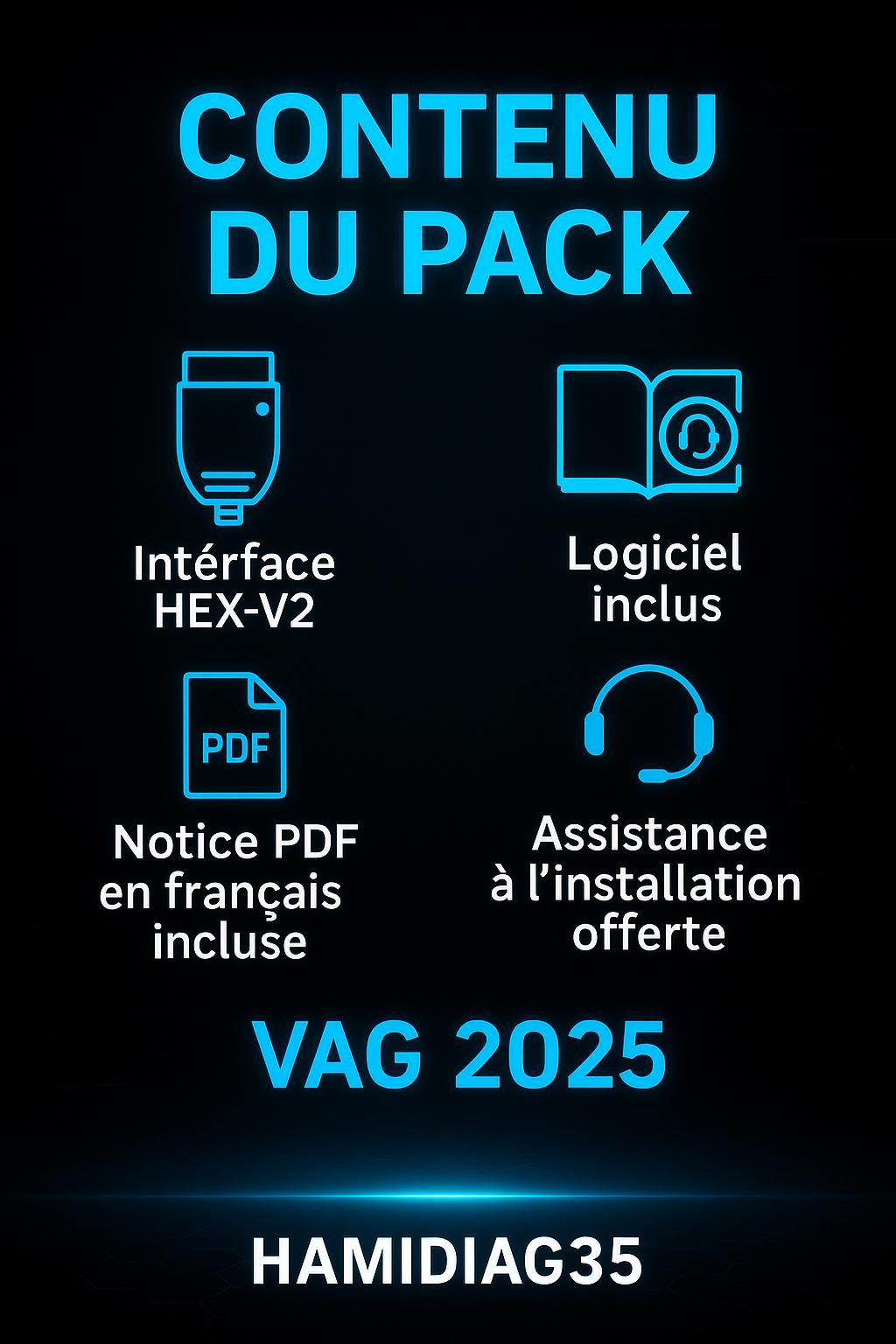 L’interface de diagnostic HAMIDIAG35 pour le groupe VAG est compatible avec tous les véhicules Volkswagen, Audi, Seat et Skoda jusqu’à 2025. Elle permet la lecture des défauts, l’effacement des codes, l’activation de fonctions cachées, le test des injecteurs et bien plus encore.